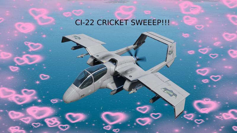 i enjoy the design, the contrapropellers are sick as fuck. but to be real its just an a10 with new engines and from that perspective i love the cricket way more. the cricket is way more in line with the ideal design for a cost-effective, subsonic CAS aircraft: a crop duster with a new sensor suite and some missiles on it. and its CUTED.
